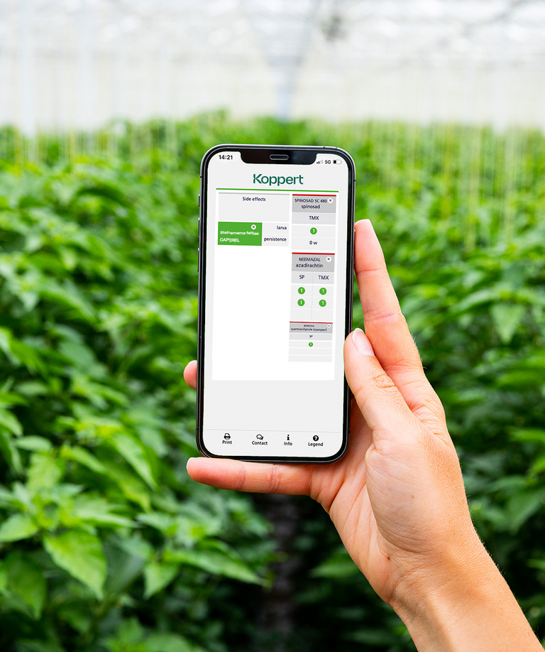 Los nematodos beneficiosos son compatibles con un gran número de insectos, fungicidas, herbicidas y nematicidas, lo que significa que no pierden eficacia cuando se usan en combinación con soluciones químicas. Para estar seguro de que el producto que pretende usar no es nocivo para nuestros nematodos, controle la base de datos de efectos secundarios. Basta con rellenar el nombre de la especie de nematodo y la base de datos le muestra inmediatamente qué productos fitosanitarios son nocivos para dicho nematodo.