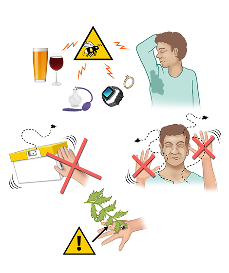 La información sobre las picaduras de abejorros ofrece indicaciones para disminuir la probabilidad de ser picado por un abejorro, así como sobre la posible reacción a una picadura y su tratamiento. El póster sobre las picaduras de abejorros y alergias se puede descargar aquí.