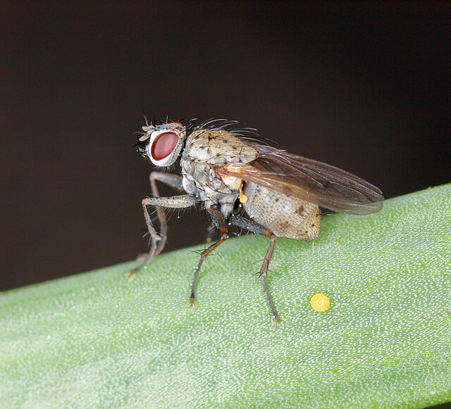 Las moscas pueden causar daños a los cultivos, tanto directa como indirectamente. El tipo de daño depende de las especies de moscas. Los daños directos son el resultado inmediato de que las larvas se alimenten de pelos radiculares y raíces tiernas, así como de tallos y tejido de la hoja, y de los frutos. Las lesiones causadas por las larvas al comer ofrecen unas vías de invasión para varios hongos patógenos, como las especies Fusarium y Botrytis. Los adultos también pueden dispersar los patógenos de las plantas infectadas a las sanas. En cultivos ornamentales, de lechugas y hierbas aromáticas, los excrementos depositados en las hojas o flores también provocan daños estéticos, pudiendo llegar a retrasar el crecimiento, sobre todo, en plántulas, si esto ocurre a gran escala.