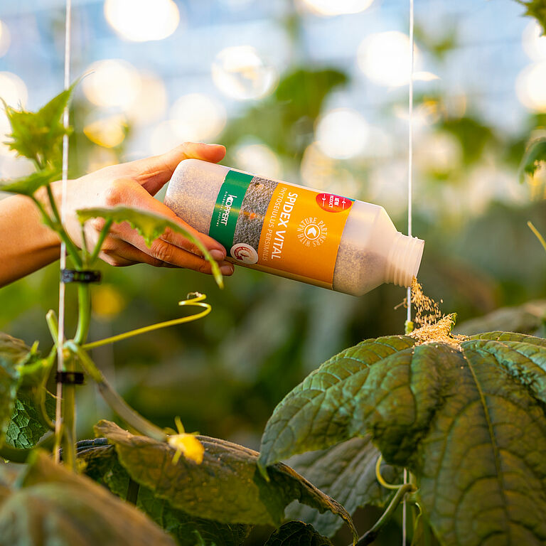 En Koppert, todo comenzó con Spidex (Phytoseiulus persimilis) hace ya más de cincuenta años. Desde el primer día, este ácaro depredador sentó las bases de nuestro control de la araña roja y a la larga se ha convertido en uno de los productos más importantes para nuestros agricultores. Gracias a los numerosos años de investigación y continua adaptación, Spidex presenta ahora una fórmula nueva con un mayor impacto en el control de la araña roja. Spidex Vital